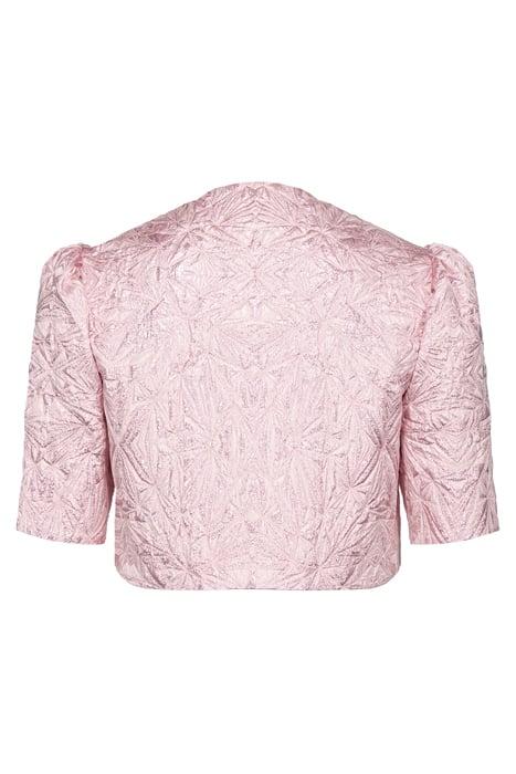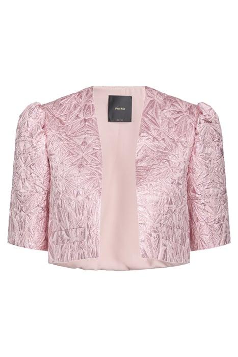 Cropped Shrug In Laminated Jacquard Fabric, With Striking Geometric-Style Design. No Fastening, Slightly Puffed Short Sleeves And Small Welt Pockets At The Sides. Lined. - Model Is 175Cm Tall And Wears A Size 40.