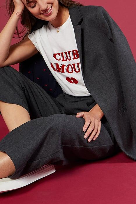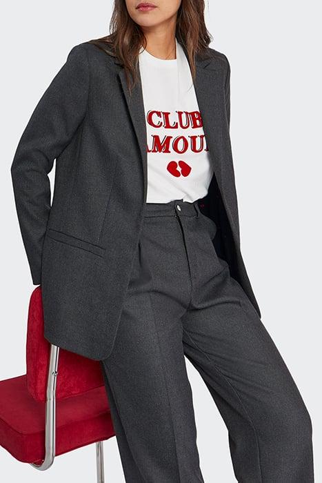 Women'S Charcoal Suit Jacket . Suit Collar, Long Sleeves . 2 Piped Side Pockets . Exclusive Kiss-Heart Print Lining Designed By I.Code . Open.