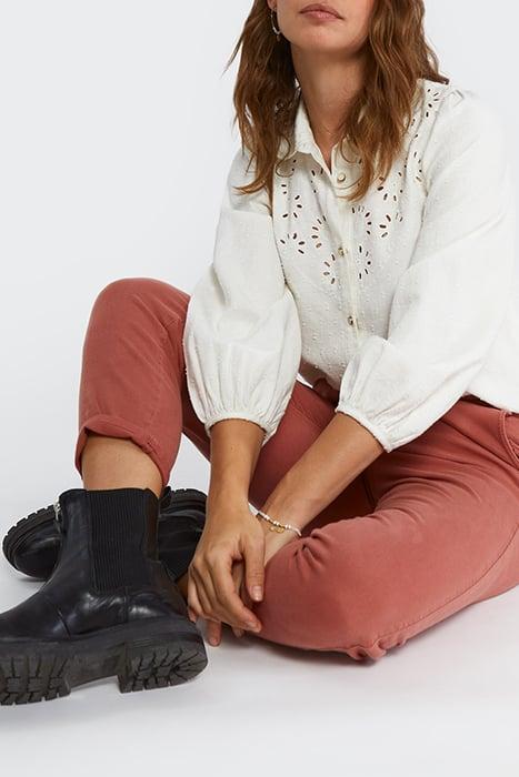 Women’S Cherry Pink Boyfit Jeans . 2 Side Pockets, 2 Patch Back Pockets . . Zip And Diamante Button Fly.