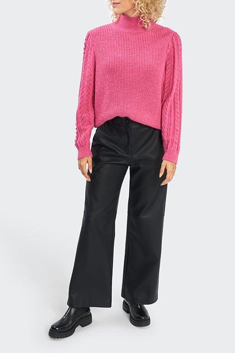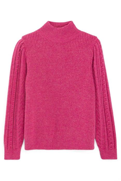 CHERRY PINK DECORATIVE KNIT HIGH-NECK SWEATER
