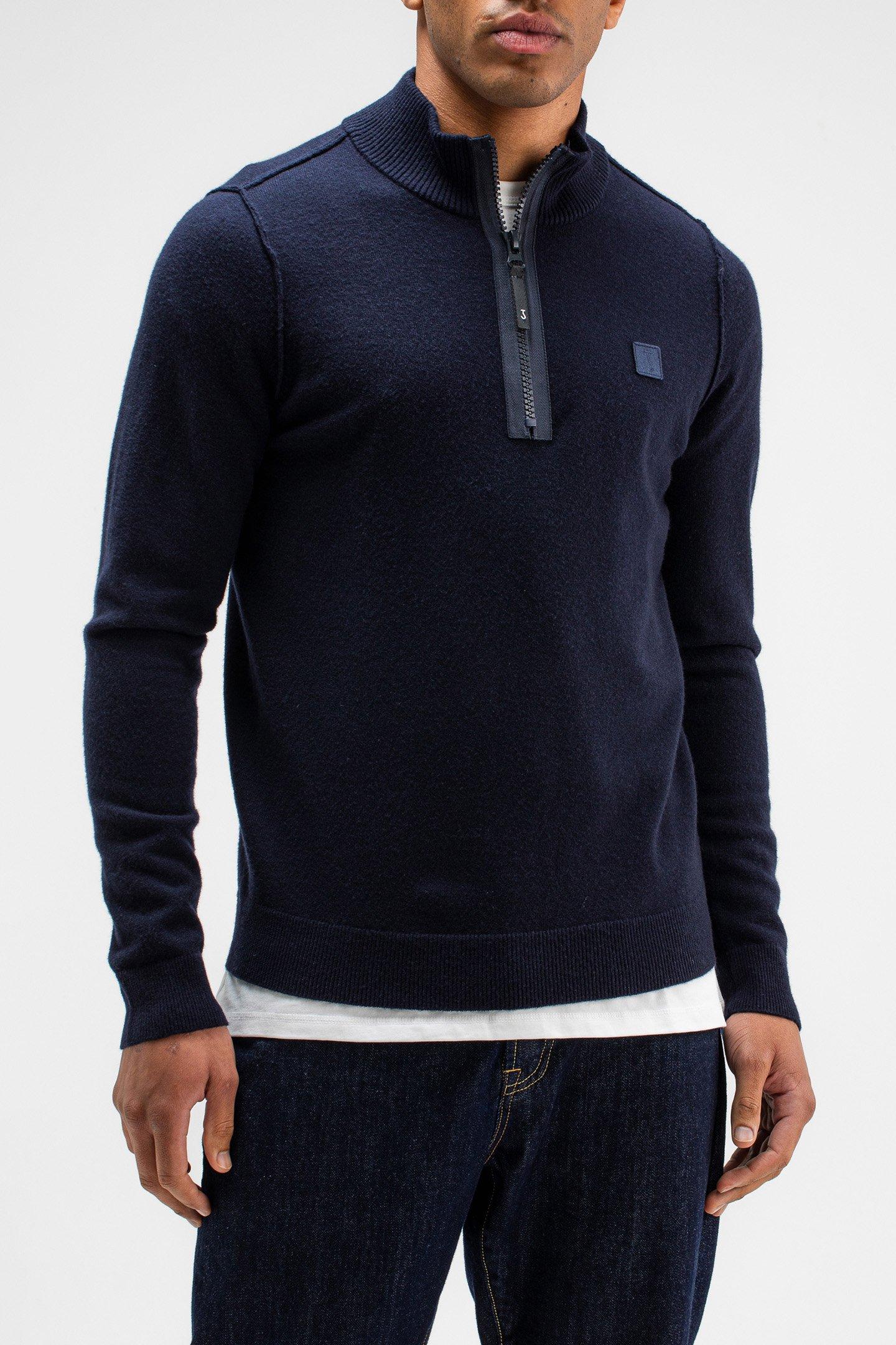 This Material Composition Makes Our Clifden Half Zip Jumper Truly Unique! By Blending 43% Wool, 21% Polyester, 20% Viscose And 16% Polyamide, We Have Literally Brought Together The Best Of Different Materials To Make This Pullover Soft, Warm, Durable And Fashionable. The Jumper Has A Half-High Collar And A Cool Zip. The Badge With Our Butcher Of Blue Badge Perfectly Completes The Item. Regular Fit 43% Wool, 21% Polyester, 20% Viscose, 16% Polyamide Our Model Is 1,85Cm Tall, Has A Hip Measurement Of 77Cm And Wears Size M