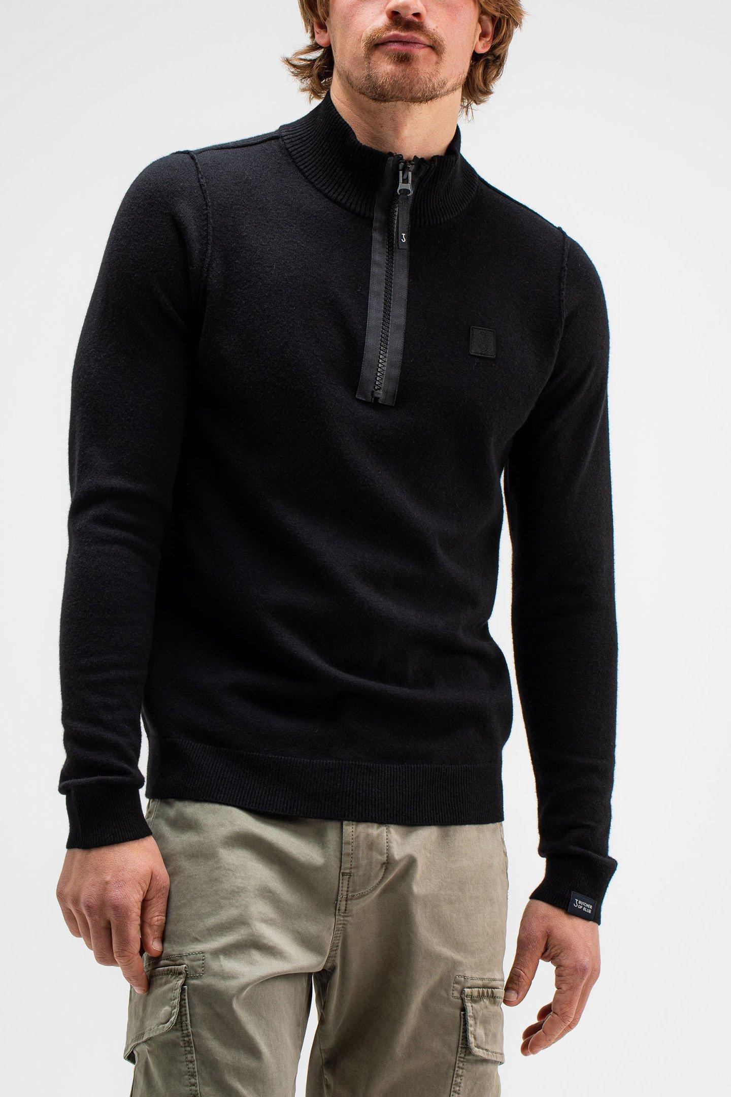 This Material Composition Makes Our Clifden Half Zip Jumper Truly Unique! By Blending 43% Wool, 21% Polyester, 20% Viscose And 16% Polyamide, We Have Literally Brought Together The Best Of Different Materials To Make This Pullover Soft, Warm, Durable And Fashionable. The Jumper Has A Half-High Collar And A Cool Zip. The Badge With Our Butcher Of Blue Badge Perfectly Completes The Item. Regular Fit 43% Wool, 21% Polyester, 20% Viscose, 16% Polyamide Our Model Is 1,85Cm Tall, Has A Hip Measurement Of 77Cm And Wears Size M