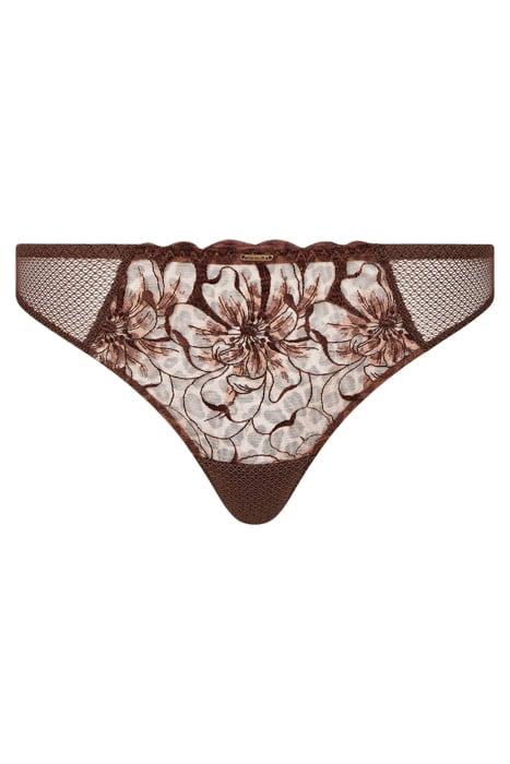 Tanga In Lush Floral Embroidery Treated In Positive Negative With Honeycomb Fishnet Inlays On The Sides All In Transparency And Seduction