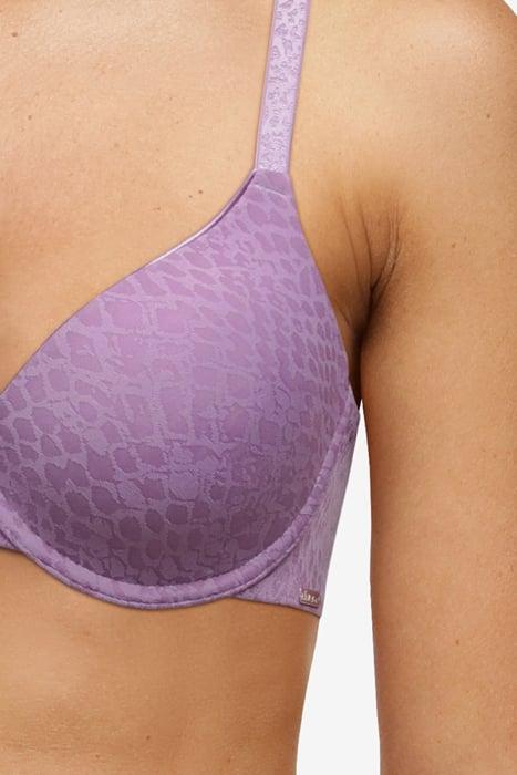 Beautiful Purple Bra With A Fine Pattern. This Way Your T-Shirt Bra Is Certainly Not Boring. The Bra Contains A Bracket So That You Get Extra Support. Also Go For The Matching String Or Hipster.