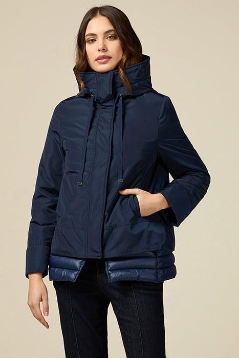 Nylon Hooded Jacket, Lightweight Inner Down Jacket, Removable, Hood, Metal Zipper Fastening Covered With Flap And Buttons, Front Pockets.