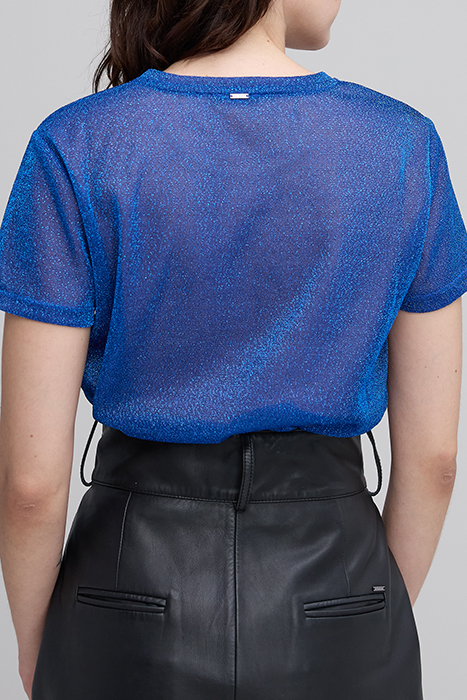 COBALT LUREX T-SHIRT WITH ANIMAL PRINT
