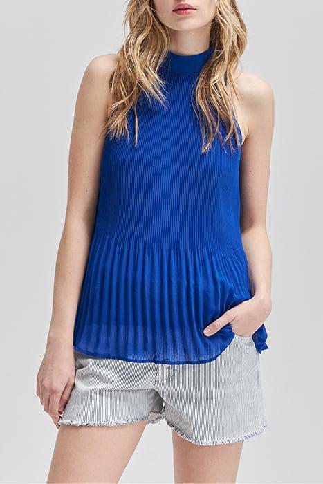 COBALT RECYCLED PLEATED TOP WITH AMERICAN ARMHOLES