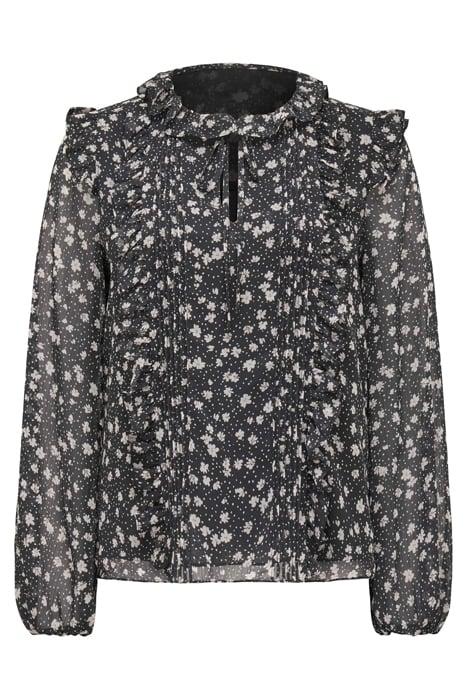 CODY RUFFLE PINTUCK BLOUSE NAVY FOLEY DITSY