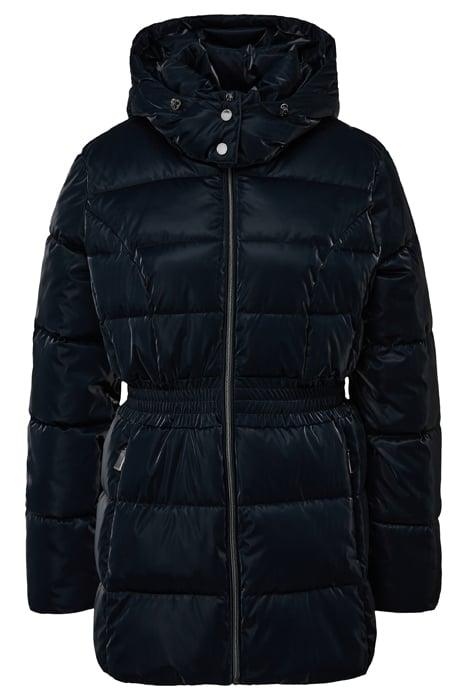 Short Quilted Coat In A Patent Look, Waist Band, Lange Mouw, Opstaande Kraag Met Capuchon
