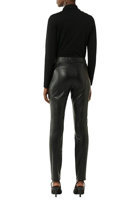 Details: decorative stitching; Fit Overall: slim fit; Fit Trouser: slim fit; Leg: slim leg; Leg Length: regular; Material: faux leather; Occasion: party. business; Quality: stretchy; Rise: mid rise; Style: effortless. elegant. casual. classic. fashionable. rocking. feminine; Waist: elasticated waistband