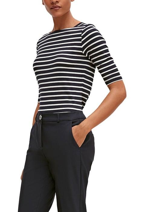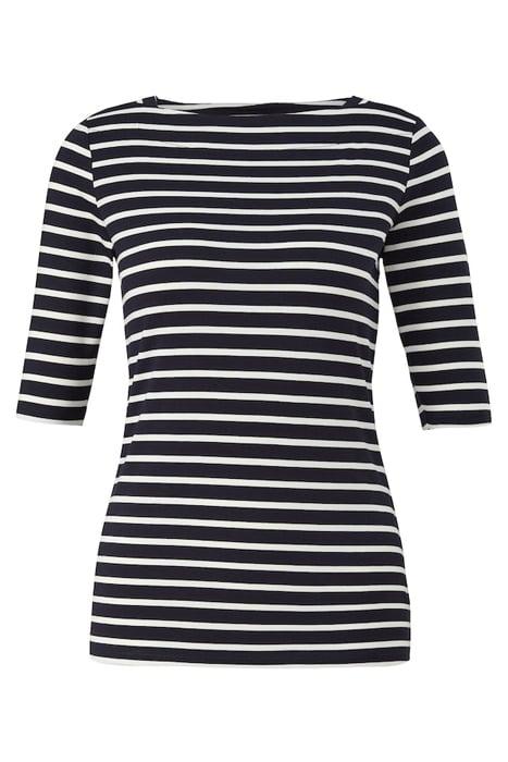 Eigenschap: Soepel, Luchtig, Elastisch Gelegenheid: Casual Hals: Boothals, Carréhals Materiaal: Viscose Motief: Gestreept Mouwen: 3/4-Mouwen, Halflang Pasvorm: Slim Fit, Getailleerd Stijl: Klassiek, Vrouwelijk, Modieus Stof: Jersey, Crêpe, Ribstof