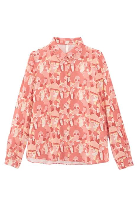 CRIMSON RED SHIRT WITH WOMEN PRINT