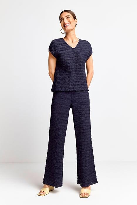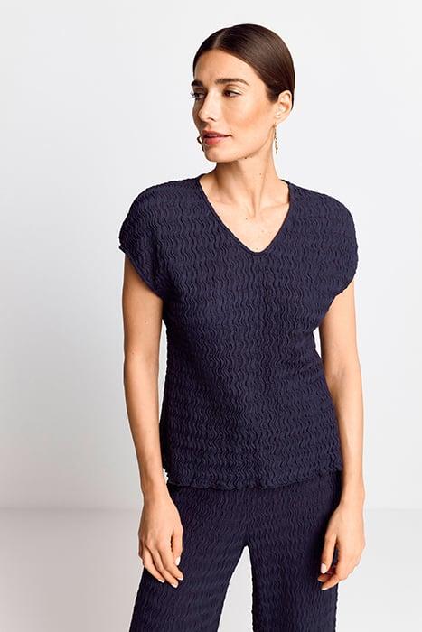 This Sleeveless Shirt Represents Summer Lightness And Enhances Any Outfit With Its Deep V-Neck And Trendy Crinkle Look. Combined With The Matching Trousers, The Monochrome Look Is Perfect.