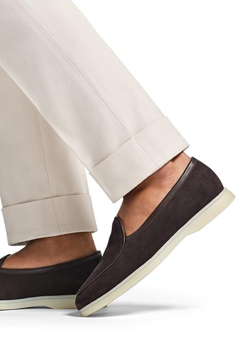 An Adaptable Belgian-Style Slip-On Made To Complement Any Look With A Smart Casual Appeal, This Lightweight Brown Pair Is Made From Supple Italian Calf Suede And Features A Rubber Sole.