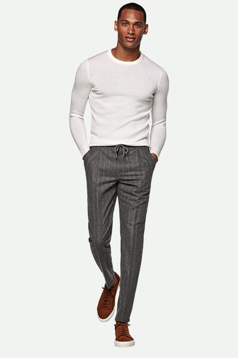DARK GREY STRIPED DRAWSTRING AMES TROUSERS