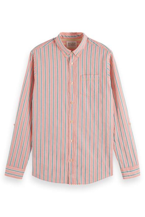 DOBBY STRIPE ROLL UP SLEEVES CORAL STRIPE