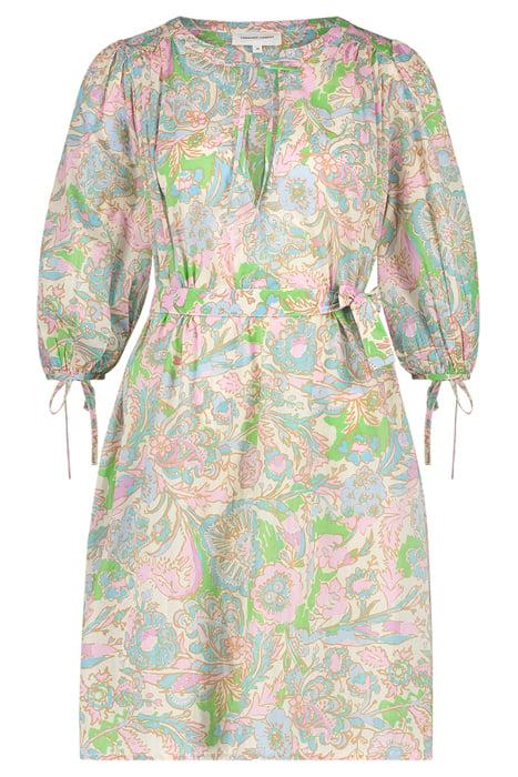 Short Dress With Voluminous Three-Quarter Sleeves And V-Neckline With A Flat Hem And Pleat Details. Dover Dress Has An Additional Bow Belt, So You Can Also Wear The Dress Fitted. This Dress Has All Over Acapulco Pink Print And Is Made Of 100% Organic Cotton: Soft, Comfortable And Sustainable (Gots Certified).