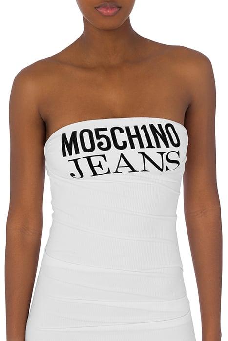 DRAPED DRESS IN LOGO PRINT COTTON WHITE