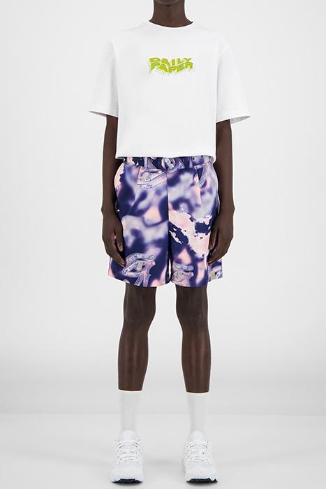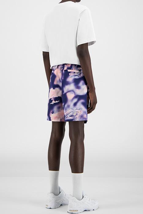 Based on the pattern of a tailored trouser, these futuristic Egyptian print jacquard shorts wear more like a piece of formalwear than a traditional short with a pleated front and darting at the back for better shape. It comes with a matching fabric belt with the circular buckle that looks good both on display and with loose ends. Go with the matching Dreamy World Howboy Shirt on top for a matching duo of summer separates.
