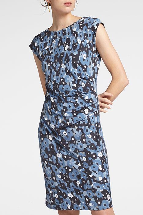 Deze jurk met aquarel bloemenprint is prachtig getailleerd waardoor je figuur prachtig naar voren komt. De jurk heeft kort aangeknipte mouwen en een ronde hals. Het geplooide detail legt een mooi accent op de taille.