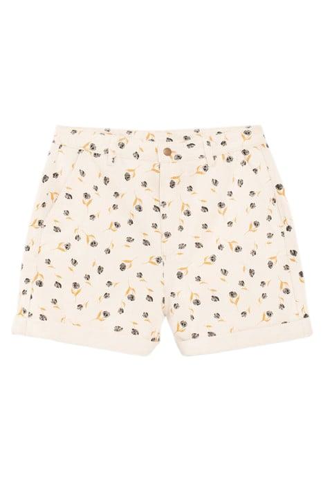 ECRU DENIM SHORTS WITH ROCK MINI-FLOWER PRINT