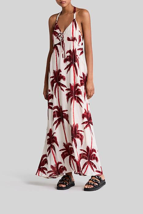 ECRU LONG DRESS WITH PALM TREE PRINT
