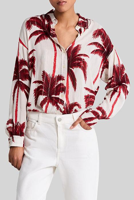 This Oversize Shirt Has Hawaii Vibes With An Exclusive Palm Tree Print. The Fine Gold Metallic Stripes Are The Signature Of An Elegant Chic Twist.