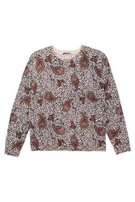ECRU SWEATER WITH PAISLEY LEOPARD PRINT