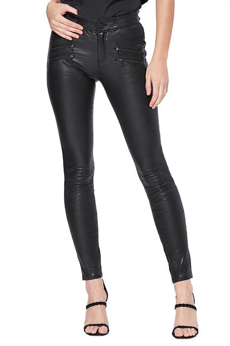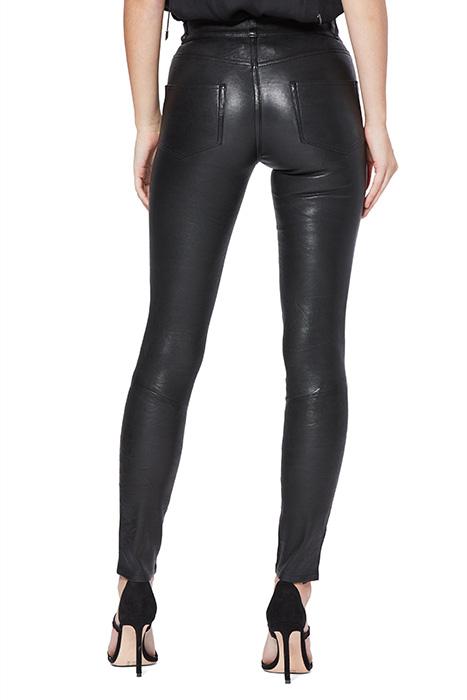 A luxe addition to your wardrobe, this skinny leg is absolutely stunning in black leather. This silhouette has been crafted from buttery soft 100% leather that is bonded with stretch-cotton to retain a second-skin fit that is extremely comfortable on the body. This premium stretch leather has a slightly wrinkled texture that gives it a unique touch that we adore.