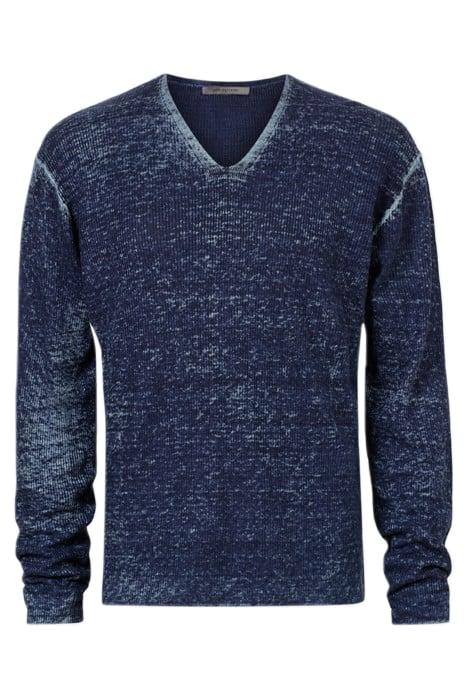 ELLINGTON SLIM FIT LS LI NEN V-NECK WITH PETROL BLUE