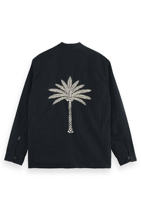 EMBROIDERED COTTON/LINEN CANVA BLACK