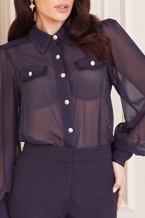 Impeccably crafted, the Emily Shirt Galaxy Button-Down Blue exudes sophistication and a timeless allure.