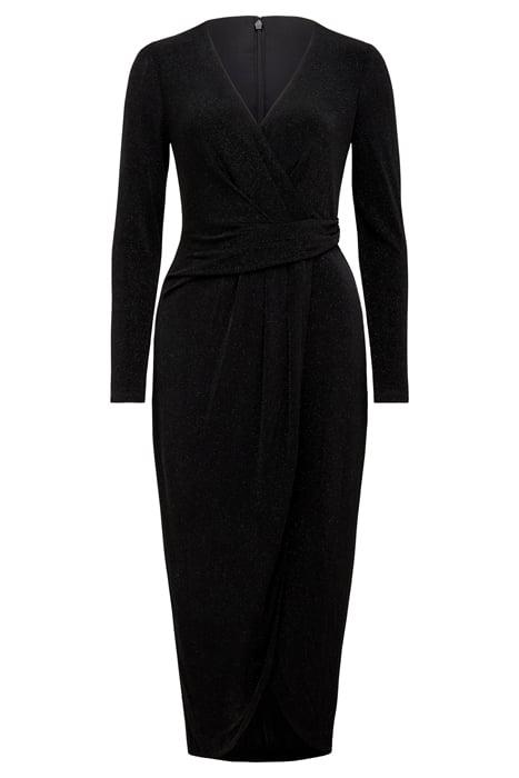 ERICA WRAP GLITTER MIDI DRESS BLACK