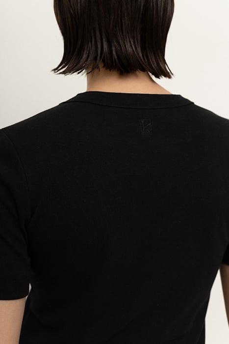 The Viveh Esme Top Is A Regular Fit T-Shirt With A High Neckline, Short Sleeves And Embroidered With The Viveh Signature Monogram Along The Back. Pair With The Zircon Jeans, The Mica Skirt Or The Quartz Pants.