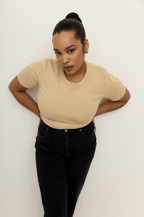The Viveh Esme Top Is A Regular Fit T-Shirt With A High Neckline, Short Sleeves And Embroidered With The Viveh Signature Monogram Along The Back. Pair With The Zircon Jeans, The Mica Skirt Or The Quartz Pants.