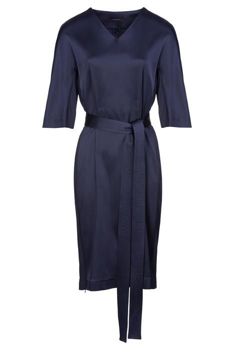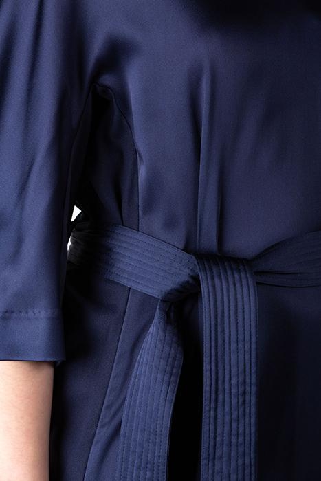 Satin Cool Easy Wearing Relaxed Fitted Midi Dress. With A Long Double Stitched Belt. Two Zips Between The Side Panel. Model Wears A Size 36.