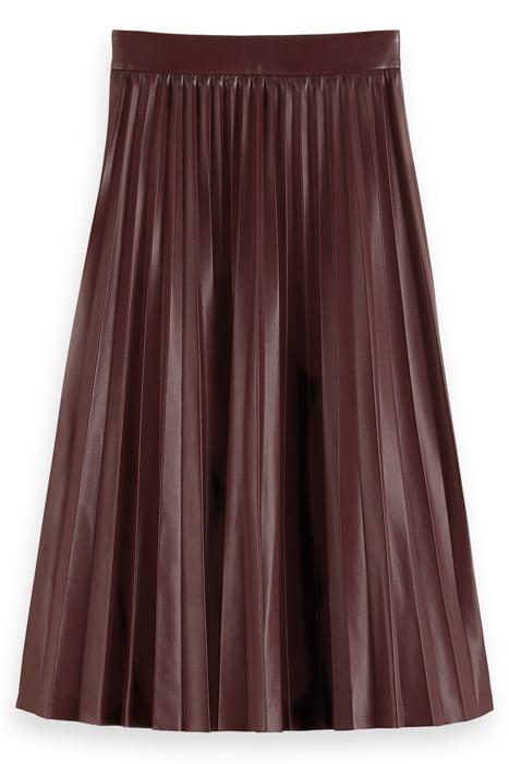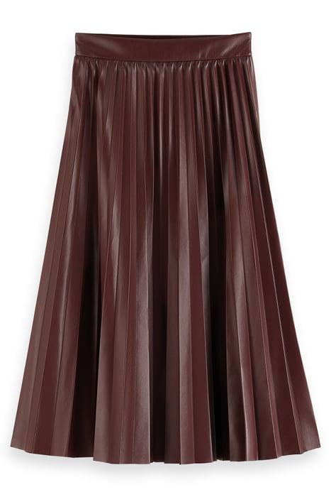 Elevate your style with the Faux Leather Pleated High-Rise Midi Skirt in Bordeaux by Scotch & Soda, available on Otrium.