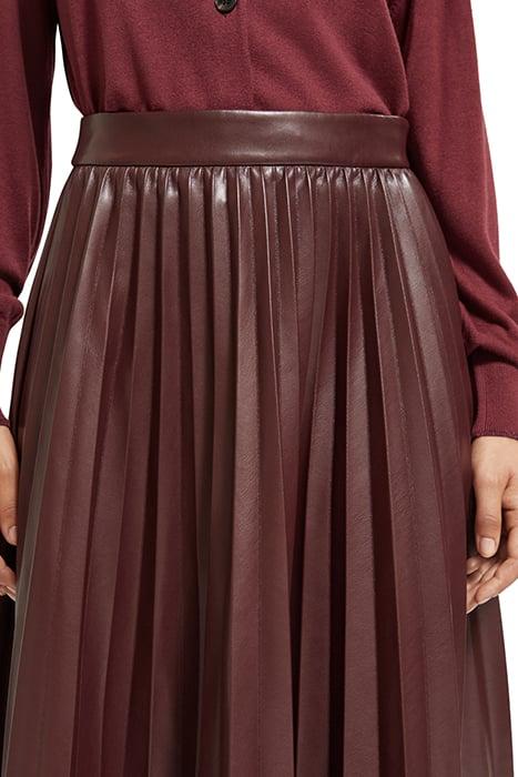 FAUX LEATHER PLEATED HIGH RISE MIDI SKIRT BORDEAUX