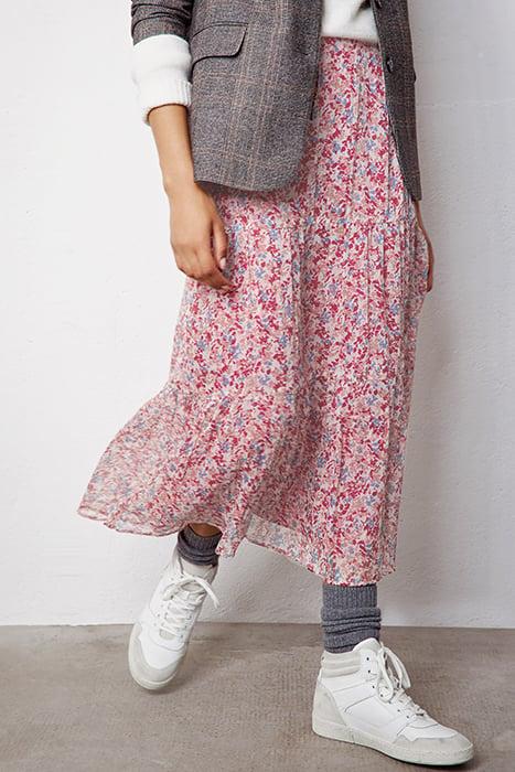 FLORAL PRINT BAGGY LONG SKIRT WITH RUFFLES