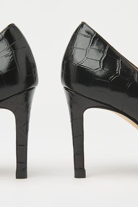 In search of a stylish pair of heels which never fall out of step? Look to our Floret courts. Crafted in Spain from beautiful croc-effect leather in timeless black, this L.K.Bennett signature style has a pointed toe, single sole and a slender, 85mm stiletto heel. Tactile in texture, this version of Floret is a contemporary twist on a classic pair of courts.