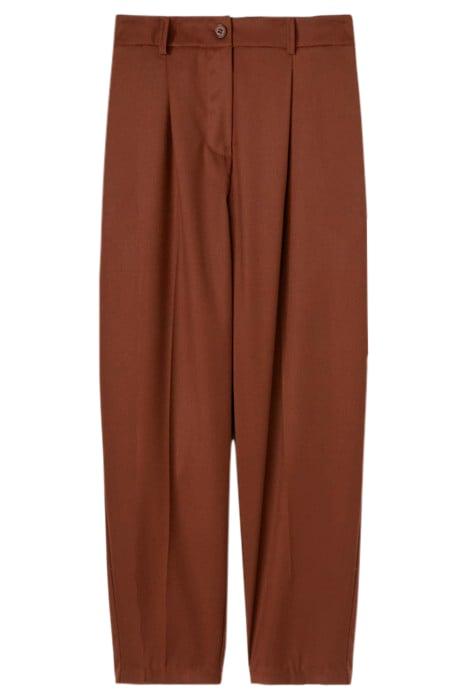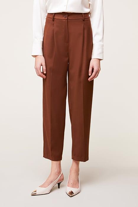 Flowing Viscose Blend Fabric Trousers With Front Darts,Front Closing With Button And Zip And Elastic Inserted At The Back