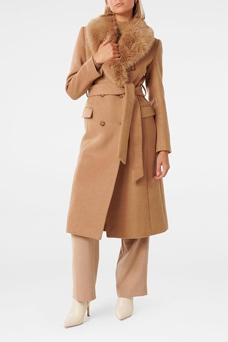 FRANKIE FAUX FUR COLLAR COAT CAMEL