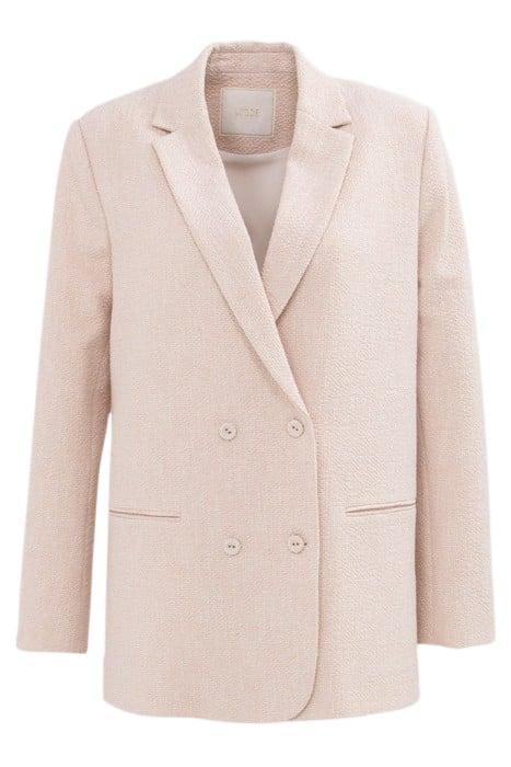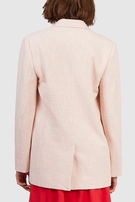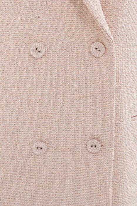 Women’S Flash Pink Coat Suit Collar, Long Sleeves 2 Piped Side Pockets, Gold Lurex Textured Fabric Double-Breasted, Covered Buttons To Fasten On Front