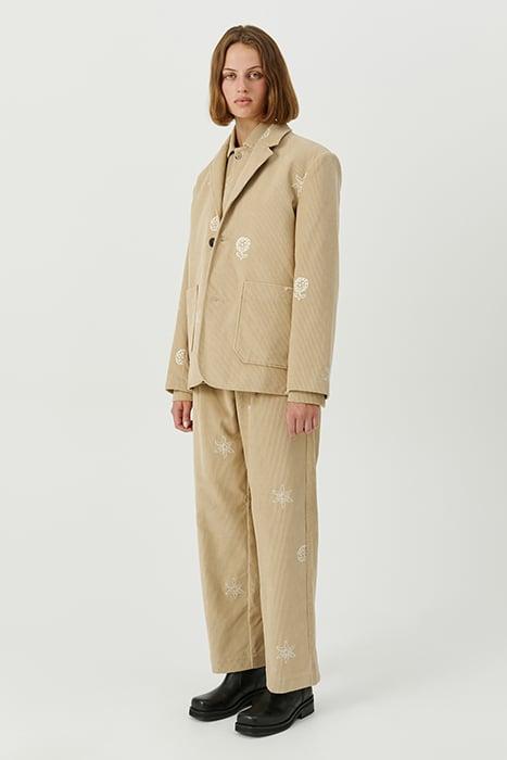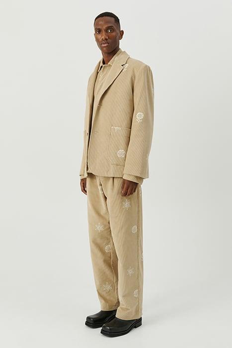 Gabe Is A Two-Button Relaxed Fit Fully Lined Blazer, With Patch Pockets And A Vent At The Back. Fabric Is All Over Embroidered Heavy Corduroy.