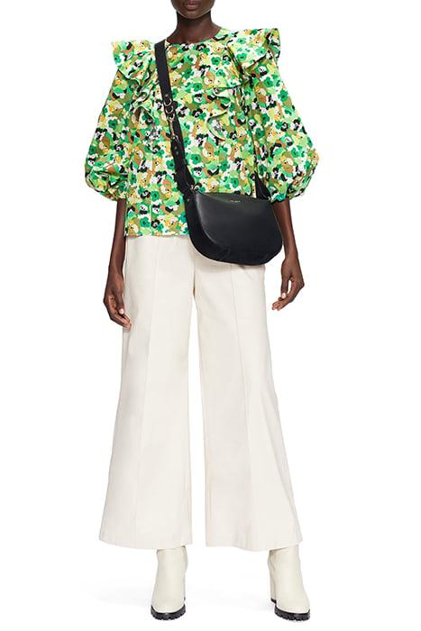 GIGIE PRINTED FRILL SHOULDER BALLOON SLEEVE TOP BRT-GREEN