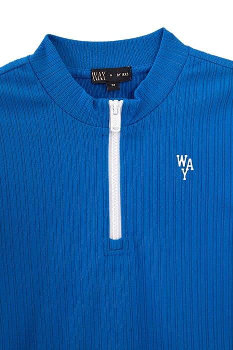 GIRLS' BLUE ZIPPED RIBBED T-SHIRT