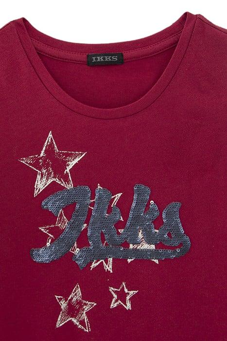 GIRLS’ BURGUNDY IKKS REVERSIBLE SEQUIN T-SHIRT
