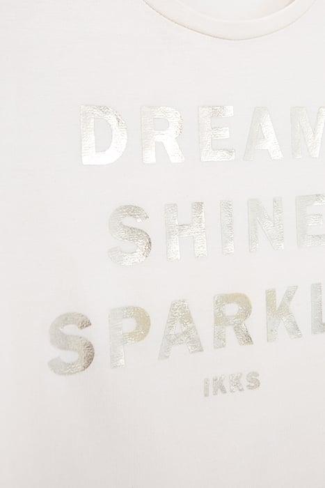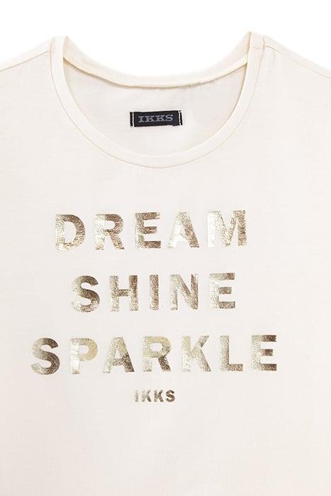 GIRLS’ ECRU T-SHIRT WITH METALLIC SLOGAN