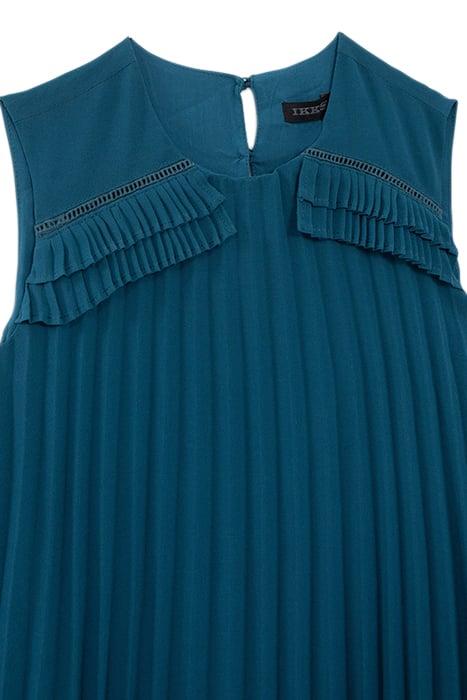 Its Incredible Peacock Green Colour. Its Elegant Accordion Pleats. Its Ladderstitch And Ruffles. This Dress Takes On A Very Elegant On-Trend Style.