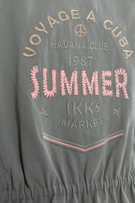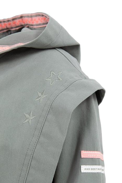 GIRLS' KHAKI ORGANIC COTTON PARKA, EMBROIDERED SLOGAN BACK